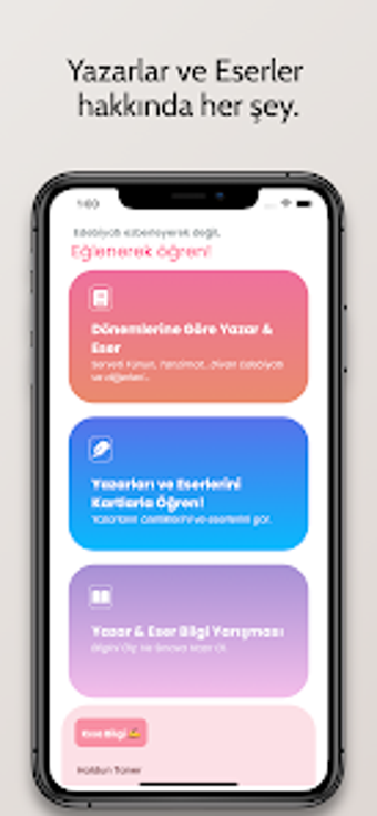 Uygulama, bilgi yarışması formatında sunulan testlerle kullanıcıların öğrendikleri bilgileri pekiştirmesine olanak tanıyor. Test sonunda verilen geri bildirim ile kullanıcılar, bilgi seviyelerini ve yaptıkları hataları görebiliyor. Eğlenceli bir öğrenme deneyimi sunan AYT Edebiyat, edebiyatı sevdirmek ve öğretmek amacıyla geliştirilmiştir.